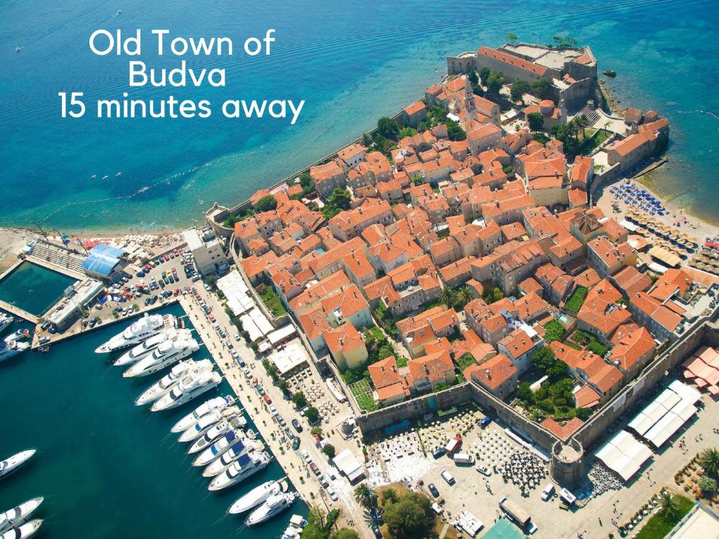 The area offers several landmarks, including Slovenska Plaža (550 m), Igralište (100 m), Budva Citadel (1.8 km) and Mogren Fort (2.6 km), which are easily reachable from the property.