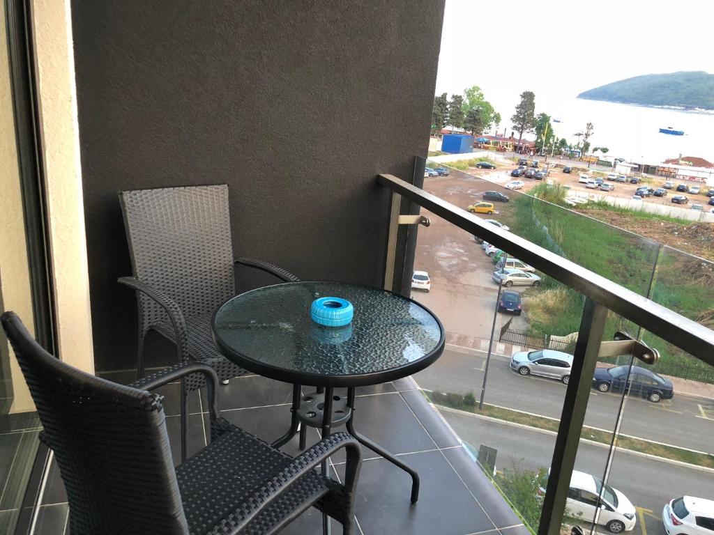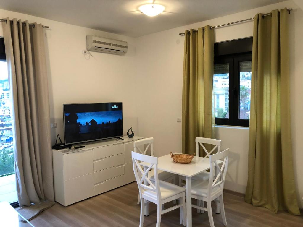 The distance from the center of Budva to the apartment is around 600 m.