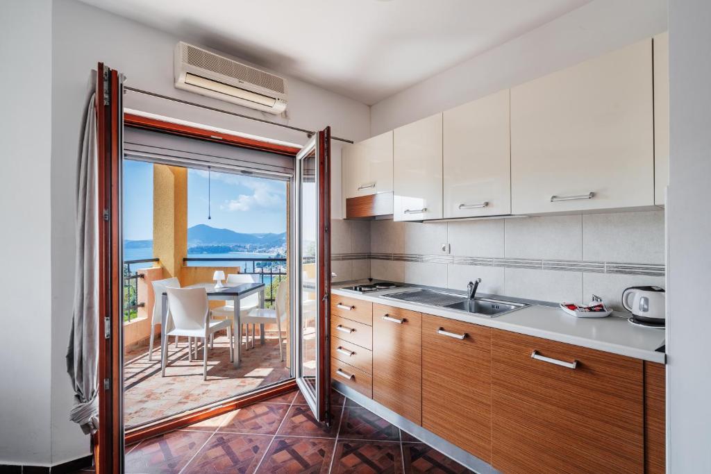Elegantly furnished apartment with 2 bedrooms, a large living room and kitchen and 2 balconies with views of Budva.