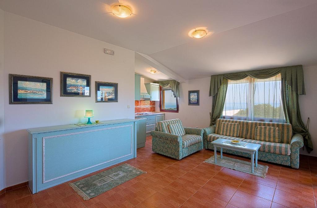 Air-conditioned apartment offering a private balcony with a sea view. Cable TV, a kitchenette and a sofa bed are featured.