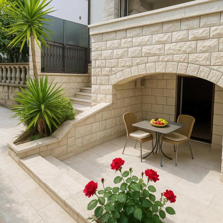 Available room categories at Apartments Villa Mirjana include Lux Apartment with 2 Rooms and Garden View, Deluxe Apartment 2 rooms with Terrace and Garden View, Lux Apartment with 2 Rooms,Balcony and Sea View and Deluxe Apartment 2 Rooms, Balcony and Sea View.