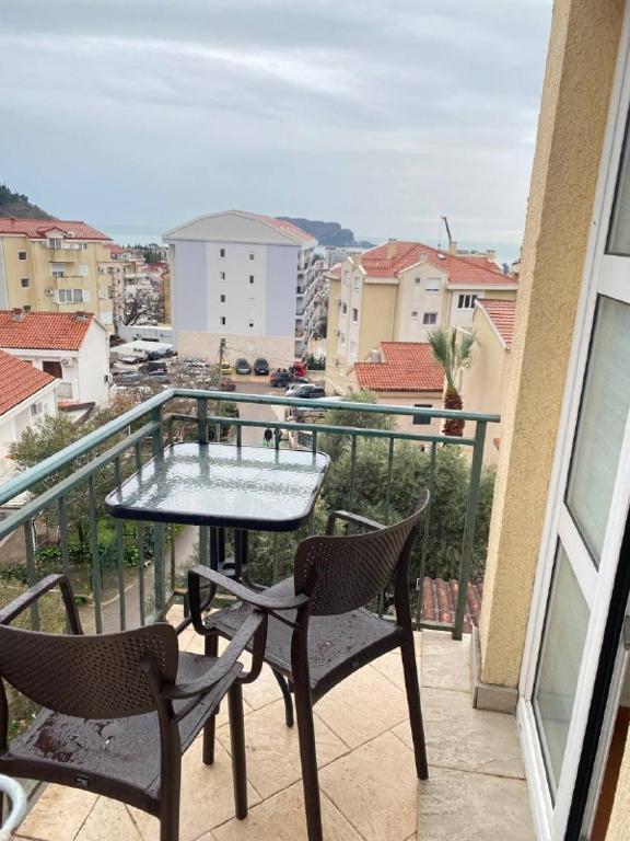The distance from the center of Budva to the apartment is around 2.2 km.